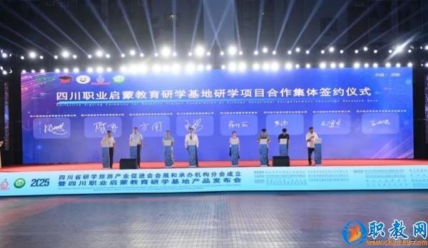| 成都,7月25日——在“天府之心”郫都,成都华商理工职业学校(四川职业启蒙教育研学基地)隆重举行“四川省研学旅游产业促进会会展和承办机构分会成立大会暨四川职业启蒙教育研学基地产品发布会”。来自全省21个地市州研学机构、教育专家、行业精英及主流媒体齐聚一堂,共同见证四川省首个、西南地区唯一的职业启蒙教育研学基地正式落地。这标志着四川职业教育迈出从“技能培养”向“启蒙筑基”战略升级的关键一步。