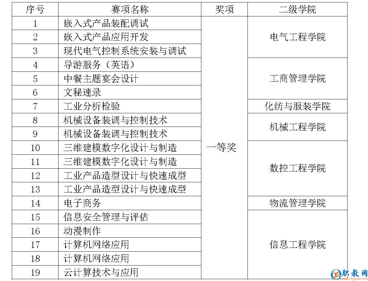 近日,陕西省教育厅发文公布了2016年陕西省高等职业院校技能大赛获奖名单(陕教高办〔2016〕19号)。在2016年陕西省高等职业院校技能大赛的37个赛项比赛中,陕西工业职业技术学院各参赛队共获一等奖19项、二等奖26项、三等奖11项,一等奖全省占比24.36%,总奖项全省占比12.42%,位居全省高职院校首位。学院还被省教育厅评为“优秀组织单位”。