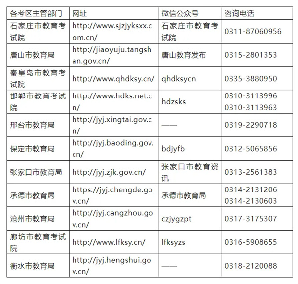 六、各考区主管部门网址、微信公众号及咨询电话