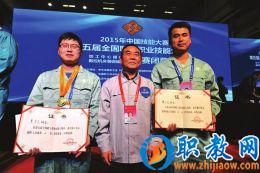 该院数控工程系主任、国家级职业技能竞赛裁判裴炳文教授(中)与该院获奖毕业生曹彦文(左)、胡之民(右)