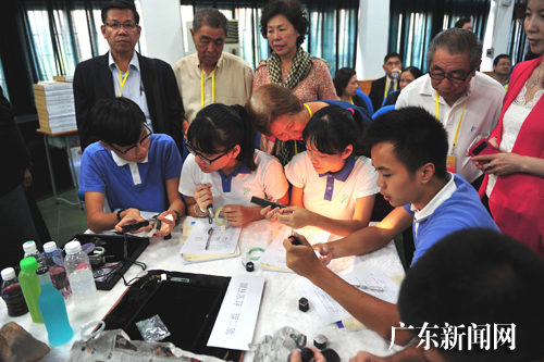 博伦职校校长任敏陪同访问团参观了钻石分级、珠宝检测、首饰制作等八间功能室。璀璨的宝玉石、高端的珠宝设备、学生专业的介绍和娴熟的操作引来大家称赞。随后,珠宝专业部主任蔡善武为来宾献上了精彩纷呈、亮点不断的珠宝鉴赏观摩课。课上,代表们饶有兴趣地听着蔡蔡善武介绍鉴定珠宝的基本方法,并参与到学生珠宝鉴定的分组活动中。