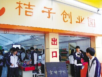 在市职业技术学校有个“桔子创业园”,它真实地模拟超市运营,从进货、仓储、结算到营销管理全部由学生团队来运行,连最初的人员招聘都是由学生“园长”来把关,招收财务、营销、物流等专业的学生到相应岗位。
