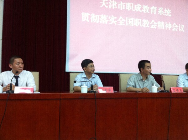 7月4日,市教委召开全市职成教系统学习贯彻全国职教工作会议精神会议。市教委副主任吕景泉同志传达了习近平总书记关于发展现代职业教育的重要指示,李克强总理接见全国职教会会议代表时发表的重要讲话,刘延东副总理、马凯副总理重要讲话精神,以及全国职业教育工作会议盛况。天津市第一商业学校校长郭葳、天津职业大学党委书记刘文江、天津广播电视大学副校长赵京华、天津圣纳科技有限公司总经理魏所库、天津市商务委副主任赵光通同志先后发言,他们一致认为,习近平总书记的重要指示、李克强总理、刘延东副总理、马凯副总理的重要讲话,体现了党中央国务院对职业教育的高度重视和关心,为职业教育改革发展指明了方向,全国职业教育工作会议的召开和《国务院关于加快发展现代职业教育的决定》的颁发为我国现代职业教育谋划了宏伟蓝图,明确了任务,结合本单位实际,制订了学习贯彻计划,按照中央领导要求和会议提出的任务,将进一步修订编制学校发展规划。