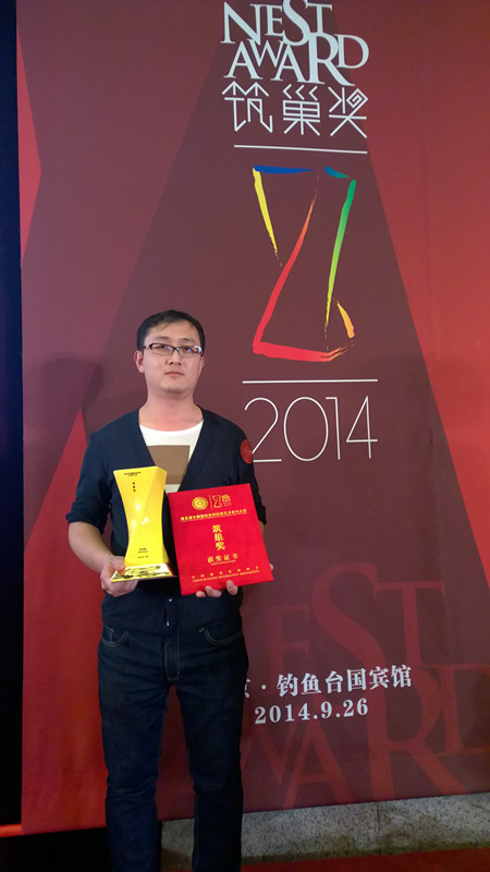 2014年9月26日,第五届筑巢奖(中国国际空间环境艺术设计大赛)学术主论坛暨颁奖盛典在钓鱼台国宾馆芳菲苑盛大落幕。活动盛况空前,近800位来自设计界的权威专家、设计精英与知名媒体欢聚一堂,共同见证了新一届优秀设计师的荣耀时刻。青岛黄海学院07级艺术设计专业学生高金梁斩获筑巢奖银奖,凭借出众的艺术造诣和高质量的参赛作品,获得了设计界权威专家学者的高度认可。