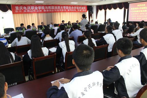 据了解,两校将在汽车检测与维修技术、电子电气工程两个专业开展合作办学,采取“3+2”合作模式,两校学分互认,成绩合格者将获得相应的毕业证、学位证。即重庆电讯职业学院统招录取的高职学生,在本校学习3年,成绩合格获得高职毕业文凭;符合韩国湖原大学入学条件的可到该校留学,学习2年,成绩合格者可获得中国政府认可的湖原大学的本科文凭、学士学位。