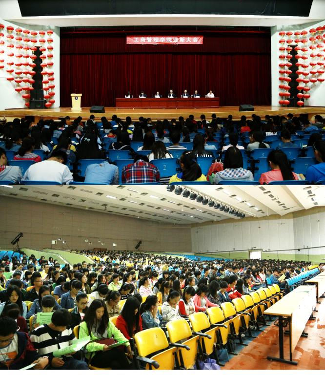 13日下午,工商管理学院2014迎新生暨入学教育大会举行,工商学院党总支书记孙继龙、院长韩文飞、副院长吴珊娜、学工办主任张联朋、实训中心主任雷引周及756名新生参加了会议。