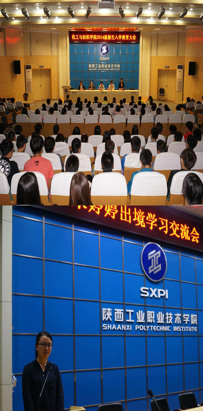 同日上午,化工与纺织学院2014级新生齐聚学术会堂,参加入学教育大会。学生处处长王超联、教务处副处长赵明威、化纺学院党总支书记孙文杰、院长杨建民、副院长贾格维、继续教育中心孔育国和全体2014级新生参加会议,并听取了2012级纺织品检验与贸易专业朱婷婷同学所作在台湾中州大学交换学习的分享报告。