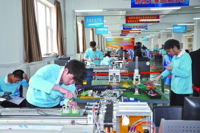 2012年初,学院建成省内仅有一的自动化生产线安装与调试实训基地,吉林省高职院校技能大赛连续三年在此举办。