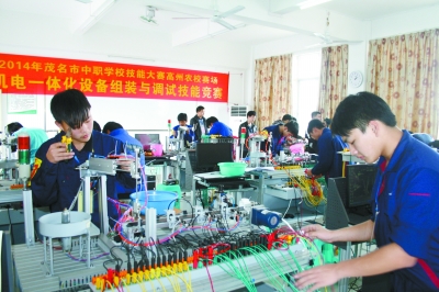 3.校企合作助推课程体系改革。学校与丰达电机(高州)公司一起合作,完成了“PLC安装与调试实训指导”、“电机及控制实训指导”以及“单片机控制装置实训指导”等3门校本核心课程的开发,并在校内试用,使课程与岗位对接。利用企业的设备优势,建立了校企联合办公室,组建了一个校企实践实训模拟室,搭建了老师与企业技术人员共同研讨的平台。