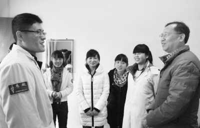 三峡医专党委书记万启蒙(右一)在秀山县医院与带教老师亲切交谈