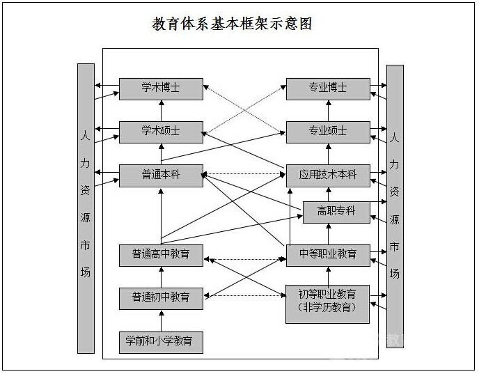 职业教育与人力资源市场开放衔接。职业教育人才培养类型、规格、数量满足人力资源市场对技术技能人才的需求,人力资源市场技术技能人才供求结构性矛盾有效缓解。职业教育与产业深度融合,与人力资源市场紧密对接。