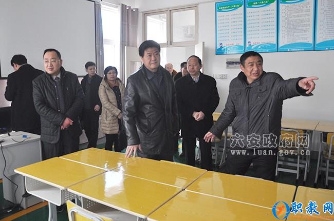 王安义一行实地查看了陈埠职高、淮河职业中专学校、霍邱师范学校等职业院校,听取了院校负责人关于学校建设发展的情况介绍,并深入学校教学区、生活区和实训室,详细了解学校的教学模式和管理情况。