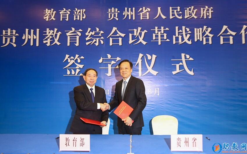 8月2日,教育部、贵州省深化贵州教育综合改革战略合作协议签字仪式在贵阳举行。教育部部长袁贵仁,贵州省委书记、省长陈敏尔代表双方签署协议并讲话。