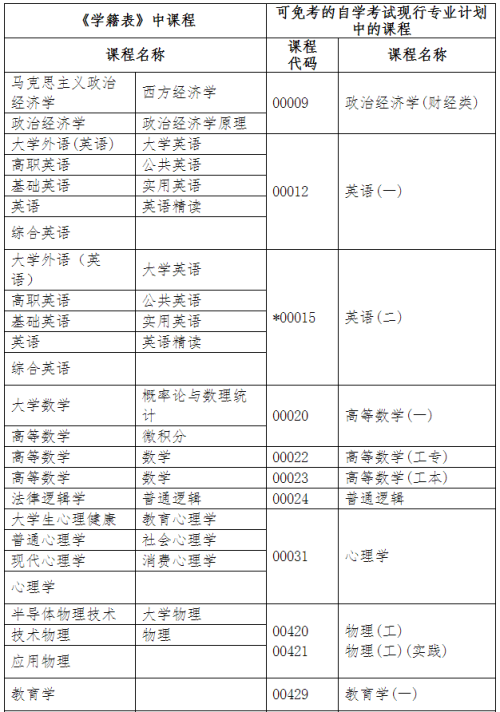 注:1.标记“#”的课程《学籍表》中的考查课也可免考;2.标记“*”的课程专科《学籍表》课程不予免考;