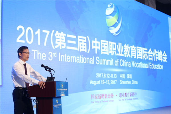在此背景下,由中国职业技术教育学会、中国开发区协会、中国生产力促进中心协会作为支持单位,国泰安职业教育与产业发展研究院、中国高等职业技术教育研究会、中国职业技术教育学会民办职业技术教育分会主办,深圳国泰安教育技术股份有限公司承办的主题为"国家战略新态势•职业教育新路径"的"2017(第三届)中国职业教育国际合作峰会"于8月12至13日在深圳前海盛大开幕。