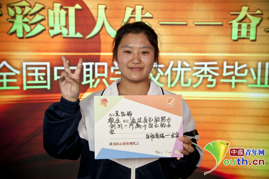 北京市求实职业学校学生吴佳瑞写下自己的“价值观体”。