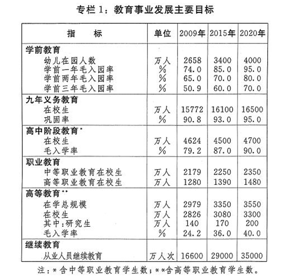 2010年7月,中共中央、国务院颁布实施《国家中长期教育改革和发展规划纲要(2010—2020)》(以下简称《纲要》),提出我国中长期教育发展规划的总体战略目标是:到2020年,基本实现教育现代化,基本形成学习型社会,进入人力资源强国行列。
